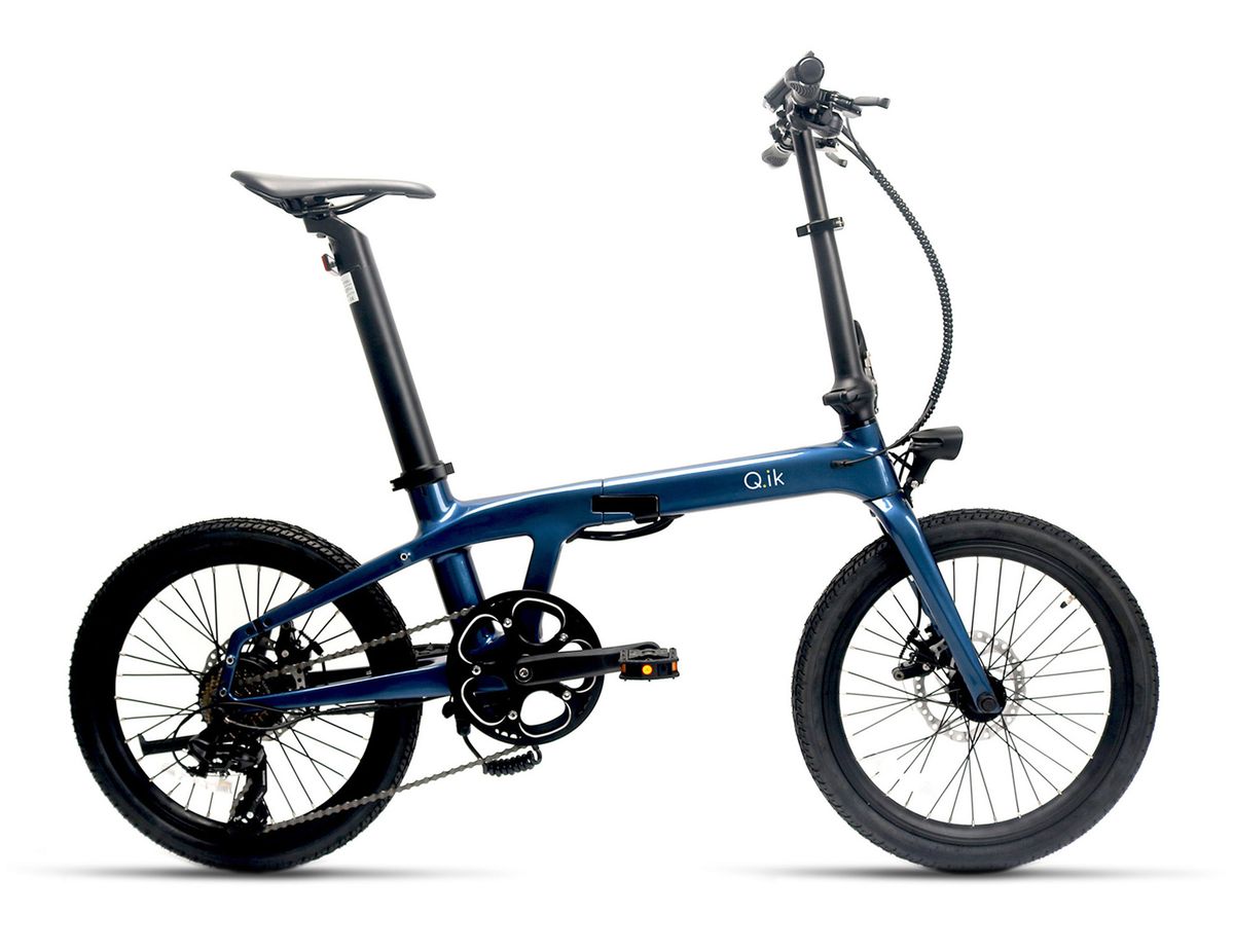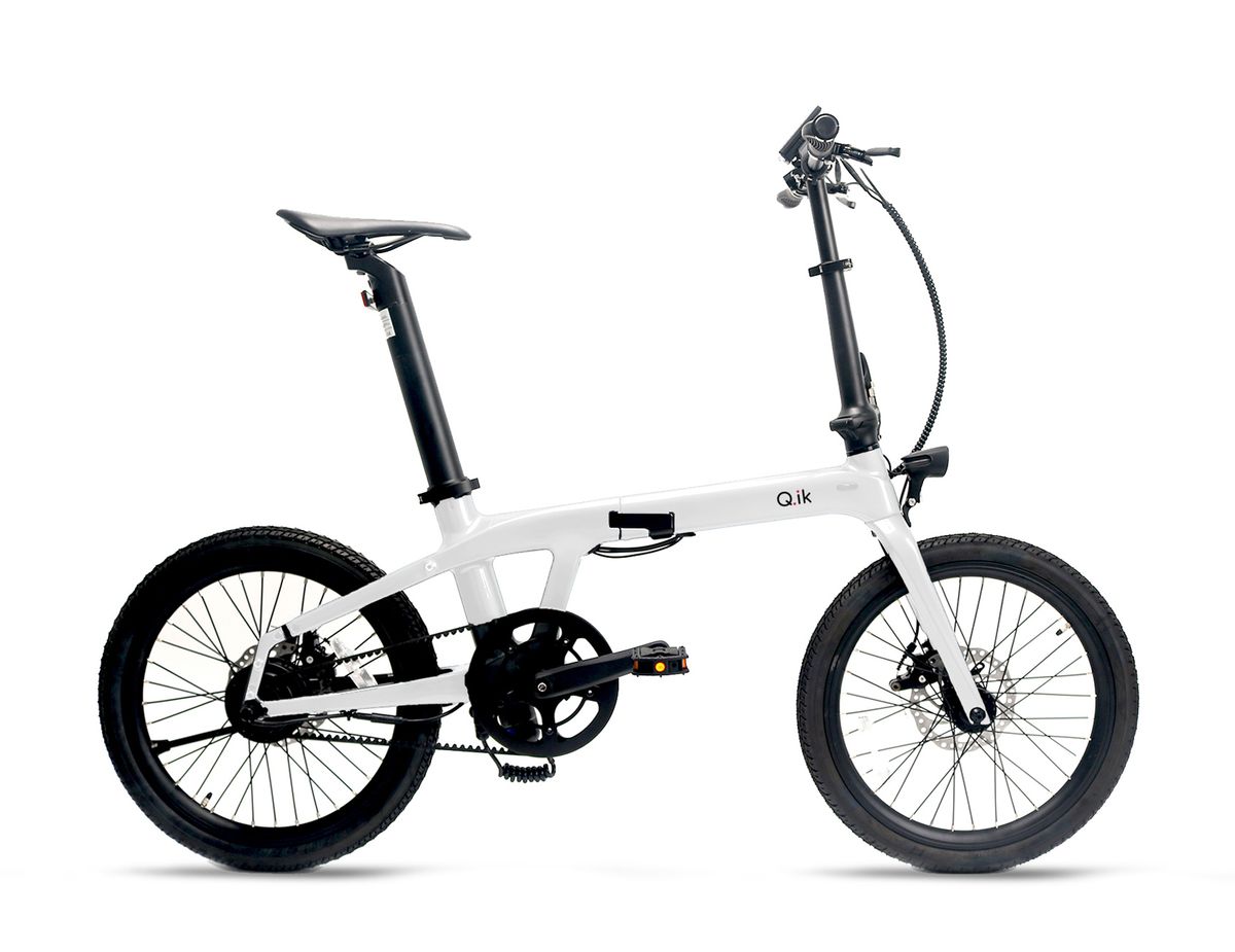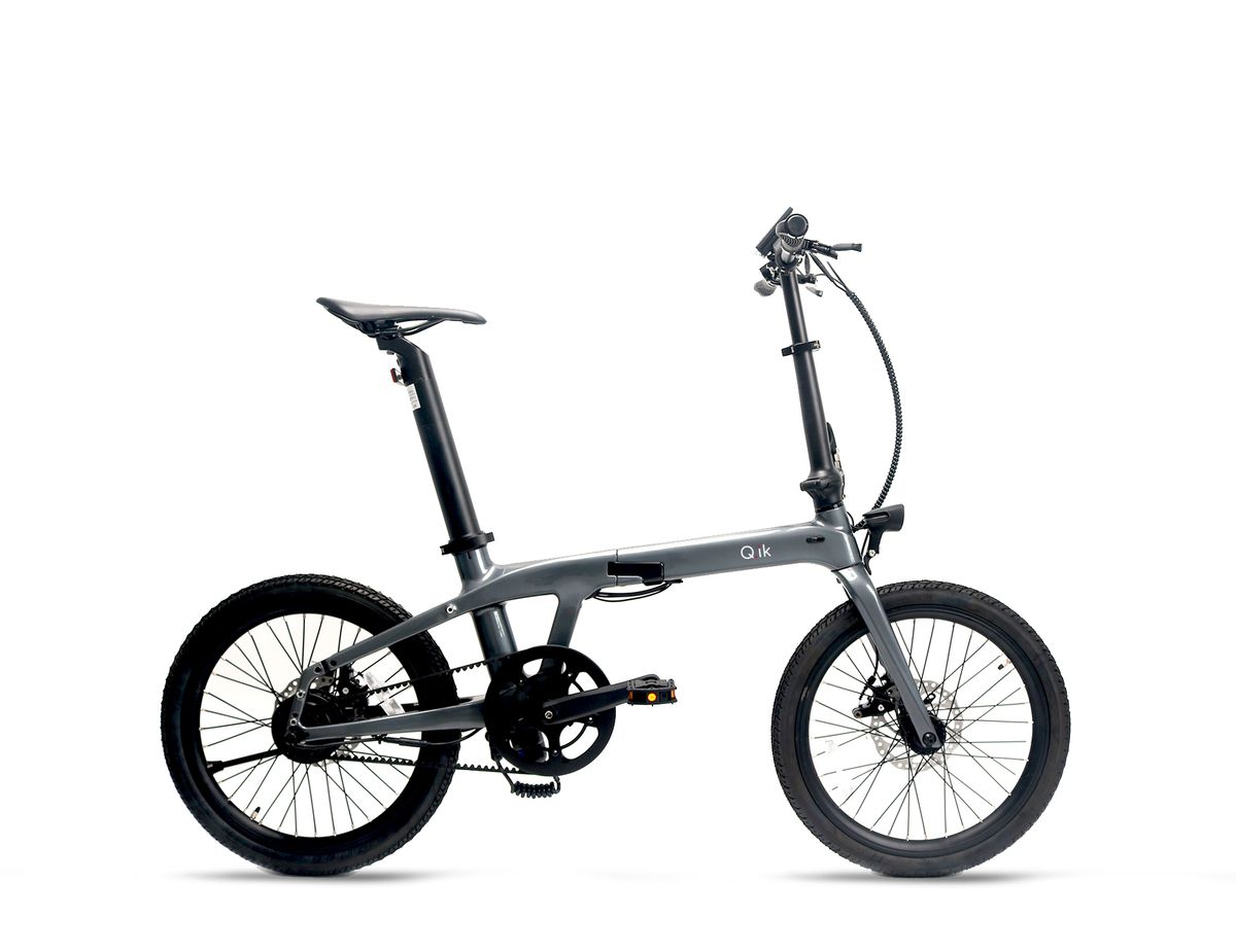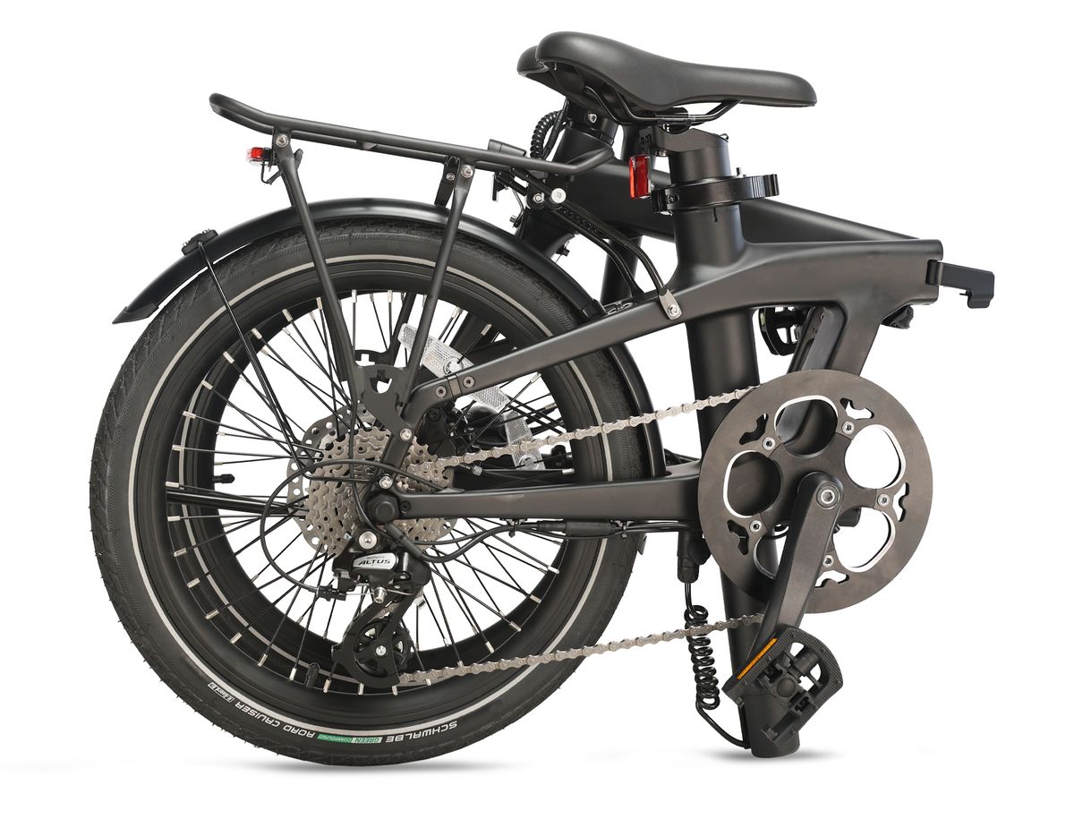 Bicicleta eléctrica plegable de rueda de 20' y cuadro de carbono, disponible para alquiler por suscripción mensual. Disponibilidad en varios colores y configuraciones.