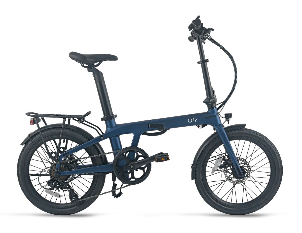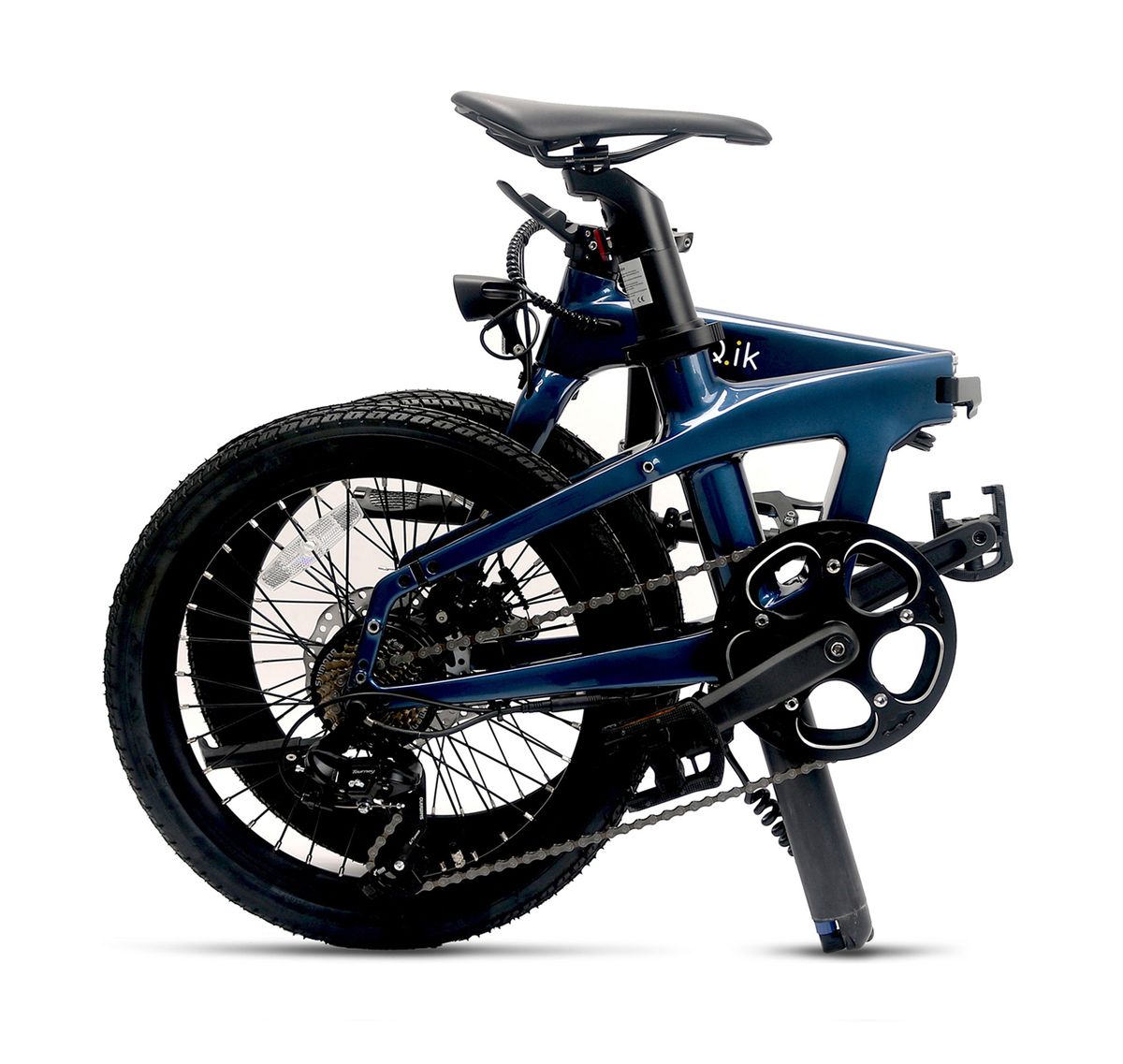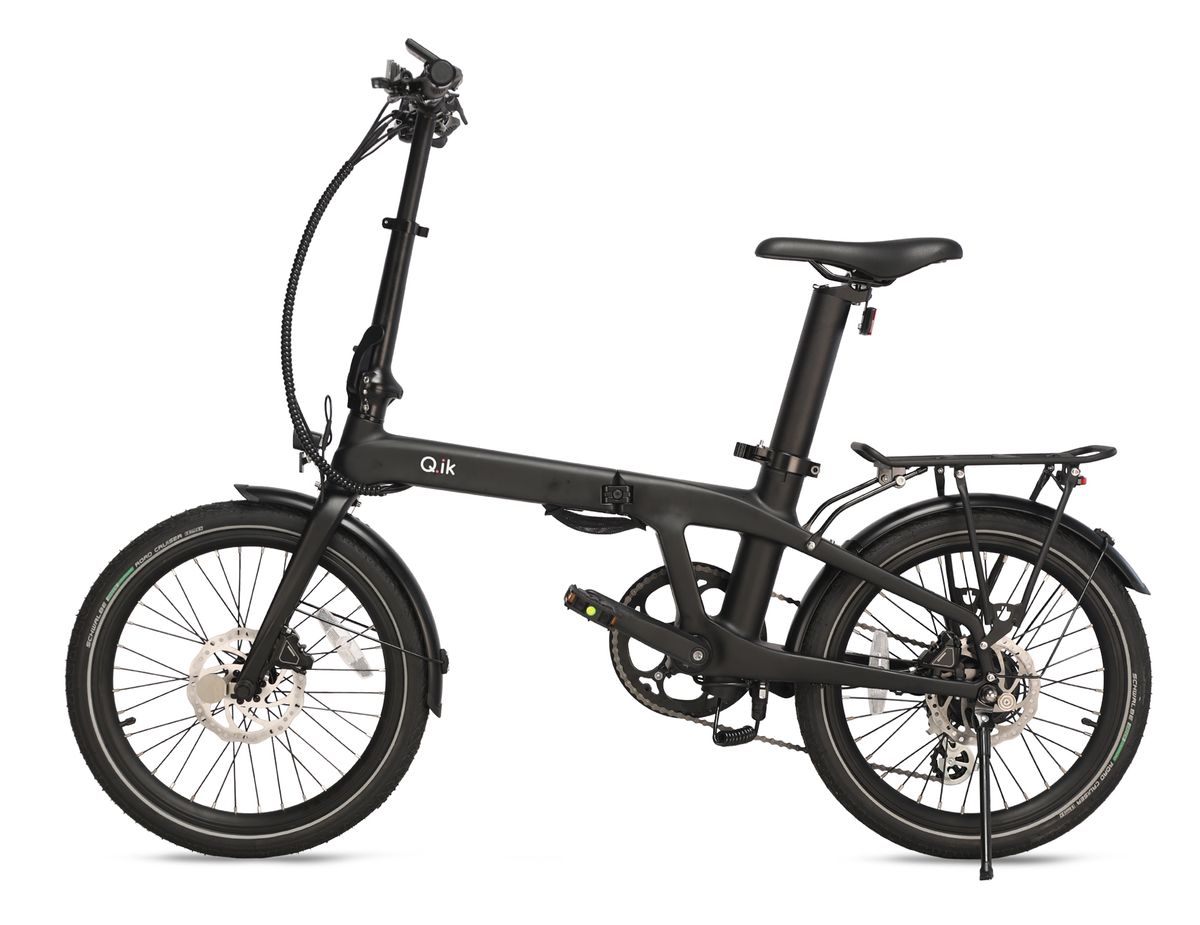 Bicicleta eléctrica plegable de rueda de 20' y cuadro de carbono, disponible para alquiler por suscripción mensual. Disponibilidad en varios colores y configuraciones.